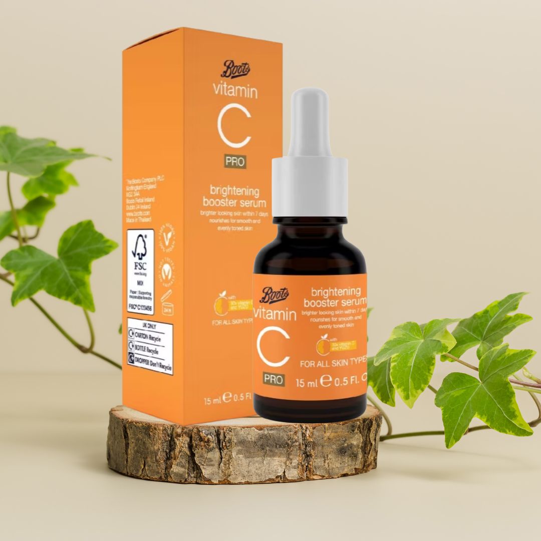 We’ve lovingly formulated Boots vitamin C brightening booster serum with vitamin C** and YUZU extract to help restore dullness, reduce the appearance of uneven skin tone and pores that look minimised. For brighter and glowing looking skin in 7 days. Suitable for all skin types.